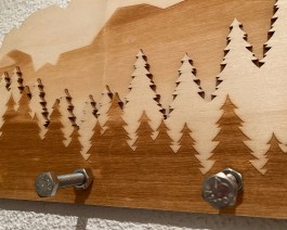 Réalisé en découpe et gravure laser, en peuplier, avec boulons.